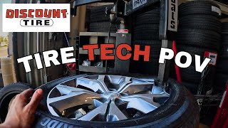 Tire Technician POV at Discount Tire Huge shoutout to my boy for rocking the chest cam for a few cars. In this video you see a flat repair, senser replacement, and tire replacement.